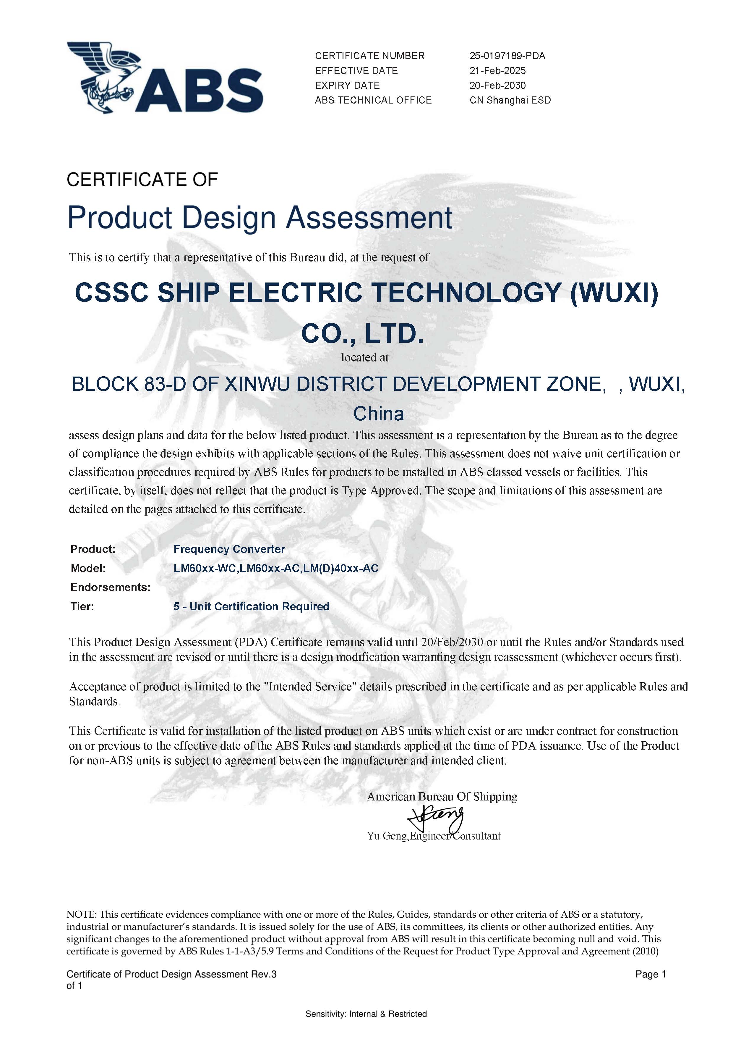 低壓船用核心功率模塊系列產(chǎn)品獲得了中國船級社、法國船級社、挪威船級社等主流船級社的型式認(rèn)可,